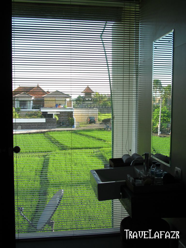 Dari Jimbaran kami diantar menuju penginapan. Bukan di kawasan Seminyak, Kuta, atau Legian seperti yang saya kira. Bukan. Melainkan di sebuah desa, jauh dari hingar bingar, di daerah Canggu. Malam disini semaraknya justru oleh orkestra tuan jangkrik dan kawan-kawan. Tempat yang tepat bagi wisatawan yang ingin bercinta dengan alam. Sambil sikat gigi, saya bisa menikmati pemandangan sawah di luar jendela. Sebelum tidur, bisa star gazing dulu dari gazebo lantai 3, yang kerlipnya saya kira ratusan jumlahnya. Bangun pagi, bisa menghirup udara sehat sepuasnya, menikmati lukisan alam pedesaan lengkap dengan peternakan sapinya. Mau ke pantai, tinggal koprol seratus kali, sampai deh di pantai Echo Beach yang masih perawan lagi sepi. Ahhh.. Ini surga dunia. ๐Ÿ™‚