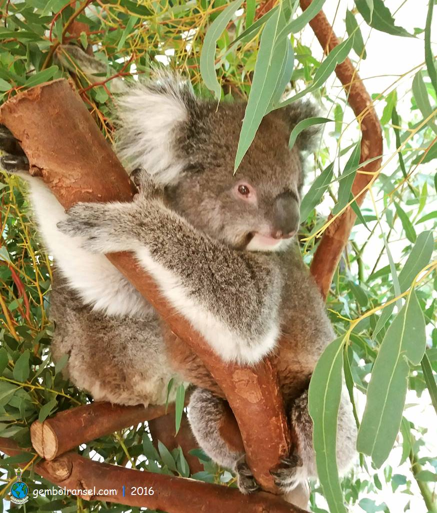 Beth juga mengajak kami mengunjungi dua fauna khas Australia lainnya: wombat dan koala. Sejujurnya, saya sedikit kecewa karena tak sempat berinteraksi lebih intim dengan mereka. Wombat yang kami jumpai hanya terduduk anteng di pangkuan mas-mas ganteng yang menjadi pawangnya. Sementara beberapa koala yang kami jumpai siang itu, tengah menggantung pulas di sebatang pohon dalam siklus tidurnya yang panjang.